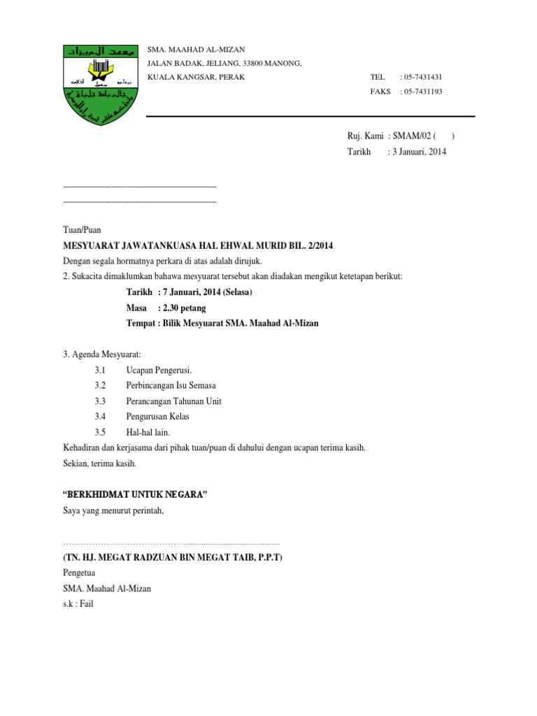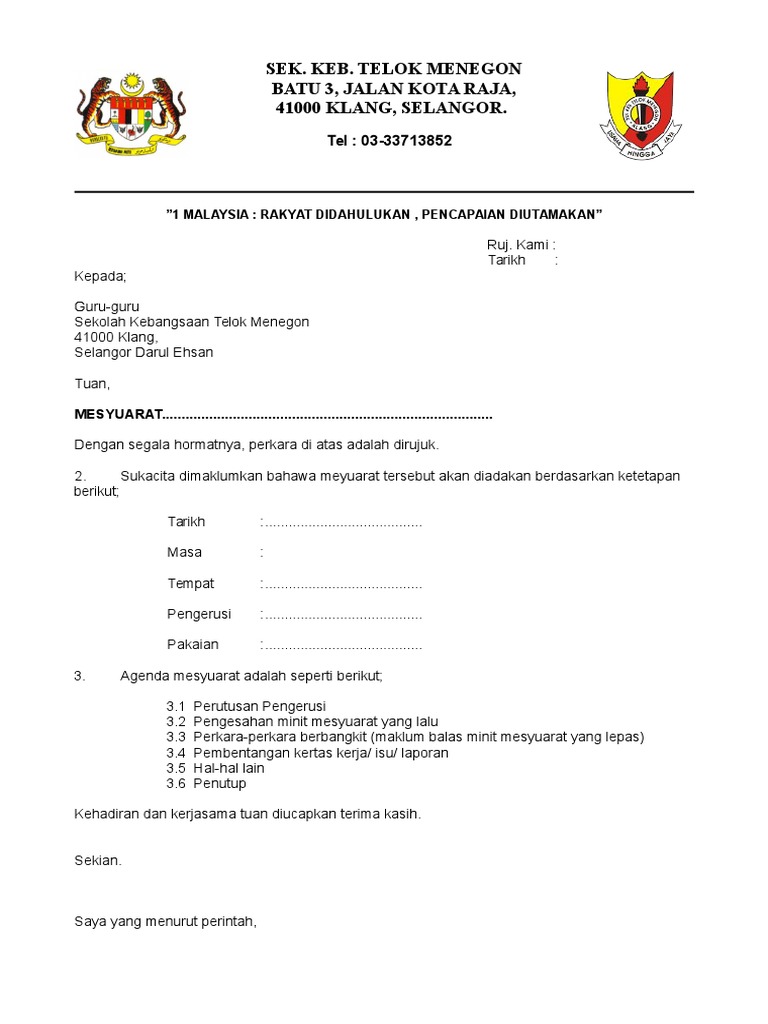 The collection that comprising chosen picture and the best among others. Surat Panggilan Mesyuarat Download Surat Panggilan Mesyuarat Download format surat lain. Berikut adalah contoh Surat Panggilan Mesyuarat Pengurusan PBS Sekolah yang boleh digunakan oleh penyelaras PBS sebagai panduan.