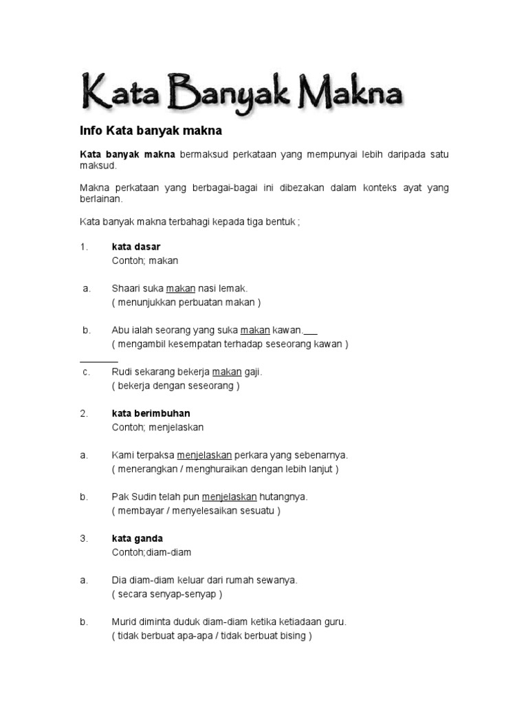 Kata Banyak Makna Dan Contoh Ayat